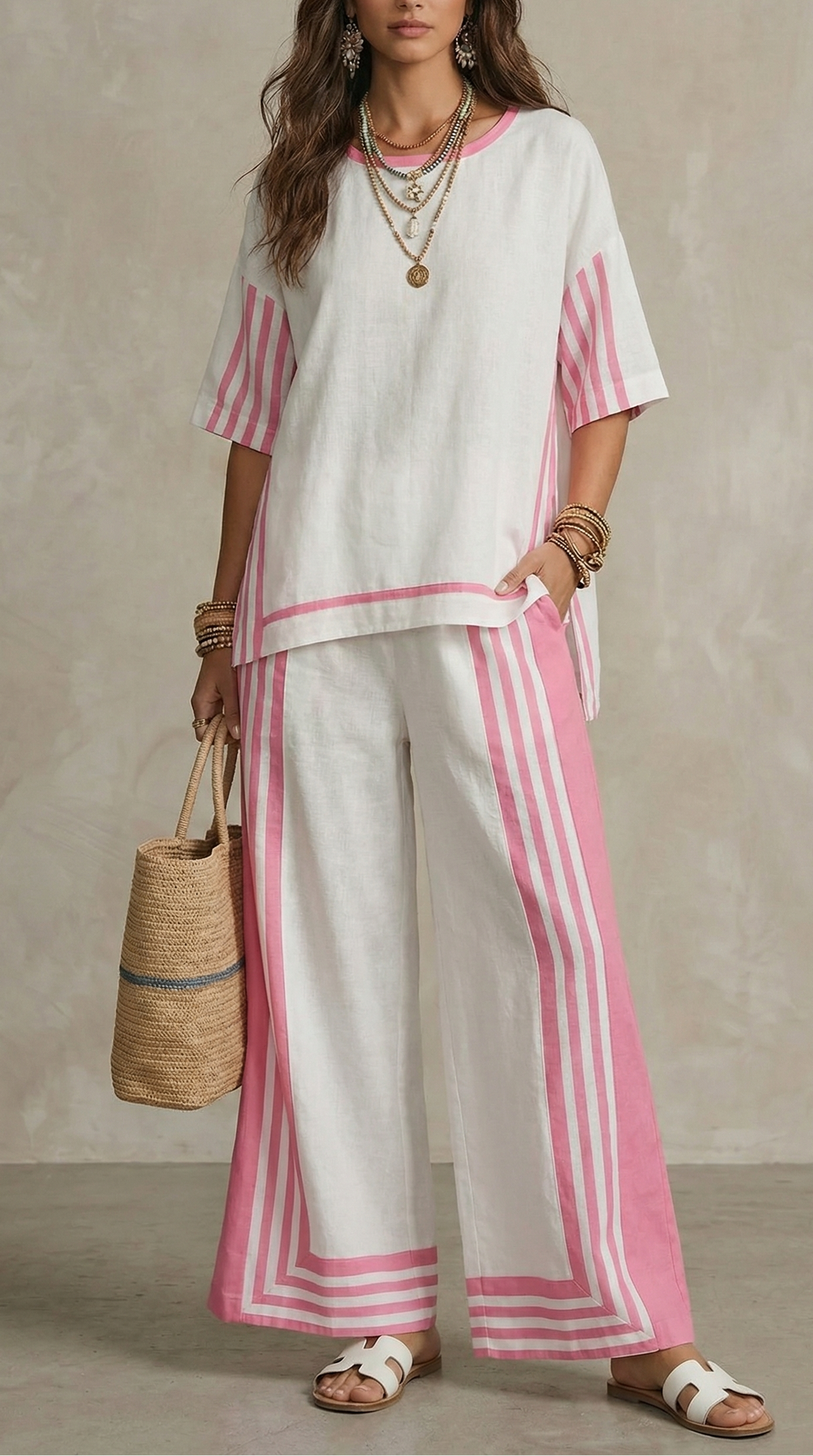 Senti il tocco morbido della lussuosa miscela di lino e cotone mentre ti muovi con sicurezza attraverso la giornata. Potentemente progettato per comfort e stile, questo set rende indimenticabili i momenti più semplici della vita, con un'aria di rafforzamento che supporta il tuo stile di vita attivo e vivace. Dalle soleggiate mattine nei caffè alle serate scintillanti sui tetti, goditi la qualità di ogni curva — comfort intrecciato nel tuo viaggio.